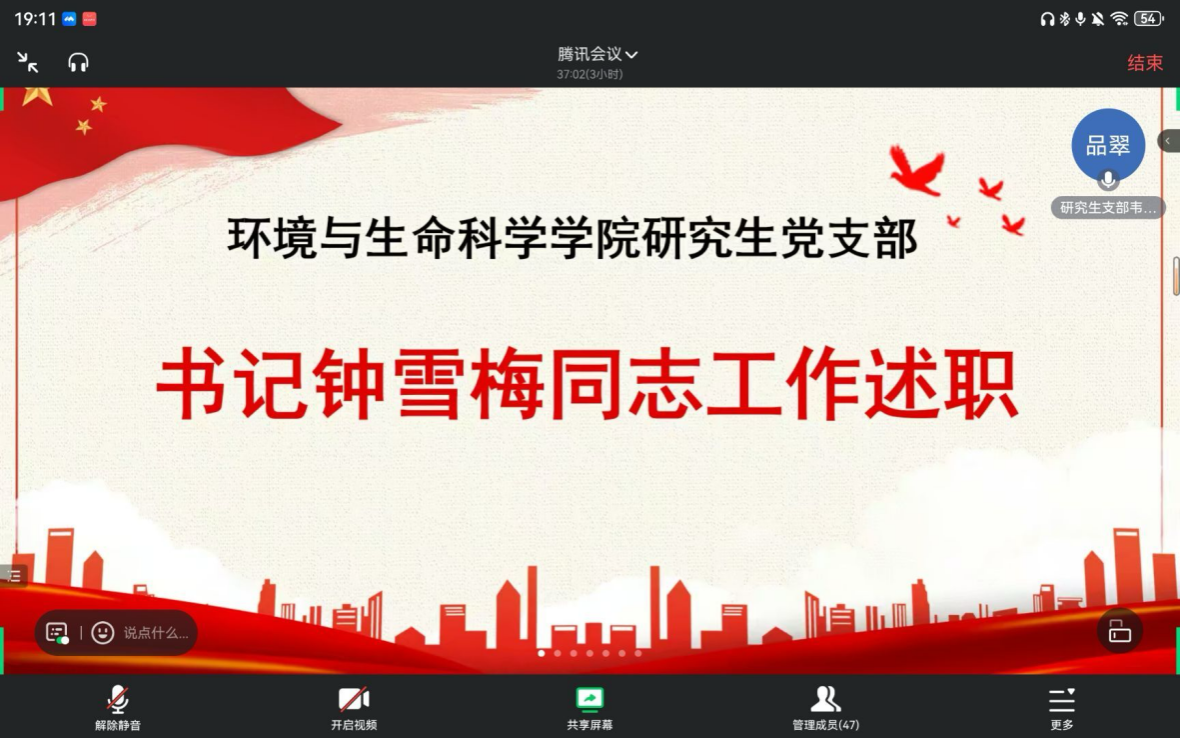 会上,党支部书记钟雪梅总结了研究生党支部一年来的各项工作,支部通过开展党课培训,全面开展主题党日活动,系统学习了党的二十大相关内容,坚定了同学们的理想信念。同时,也指出了现阶段党建工作中存在的问题,并希望支部的同志们能够不断提升自我,加强党组织的建设。