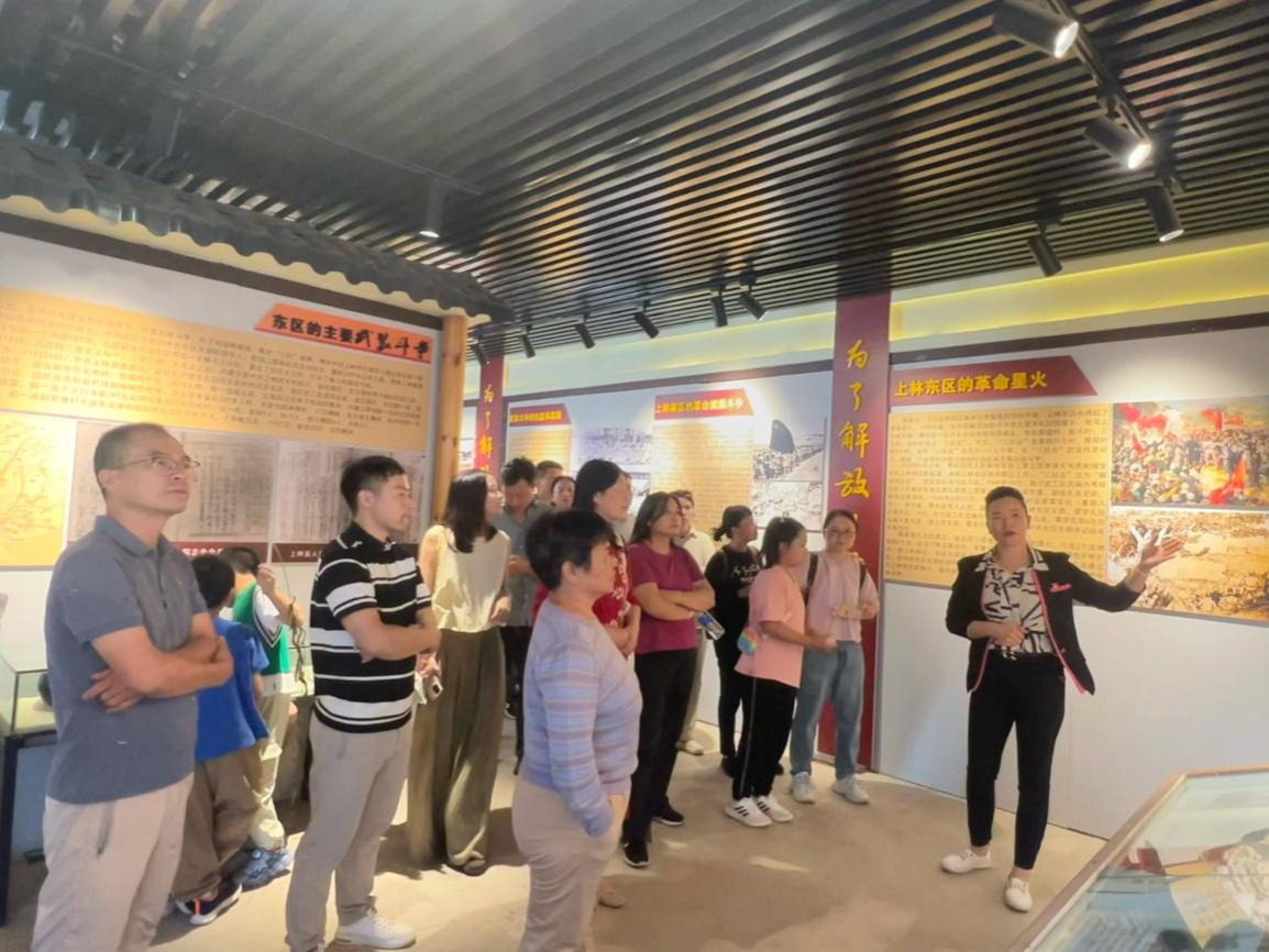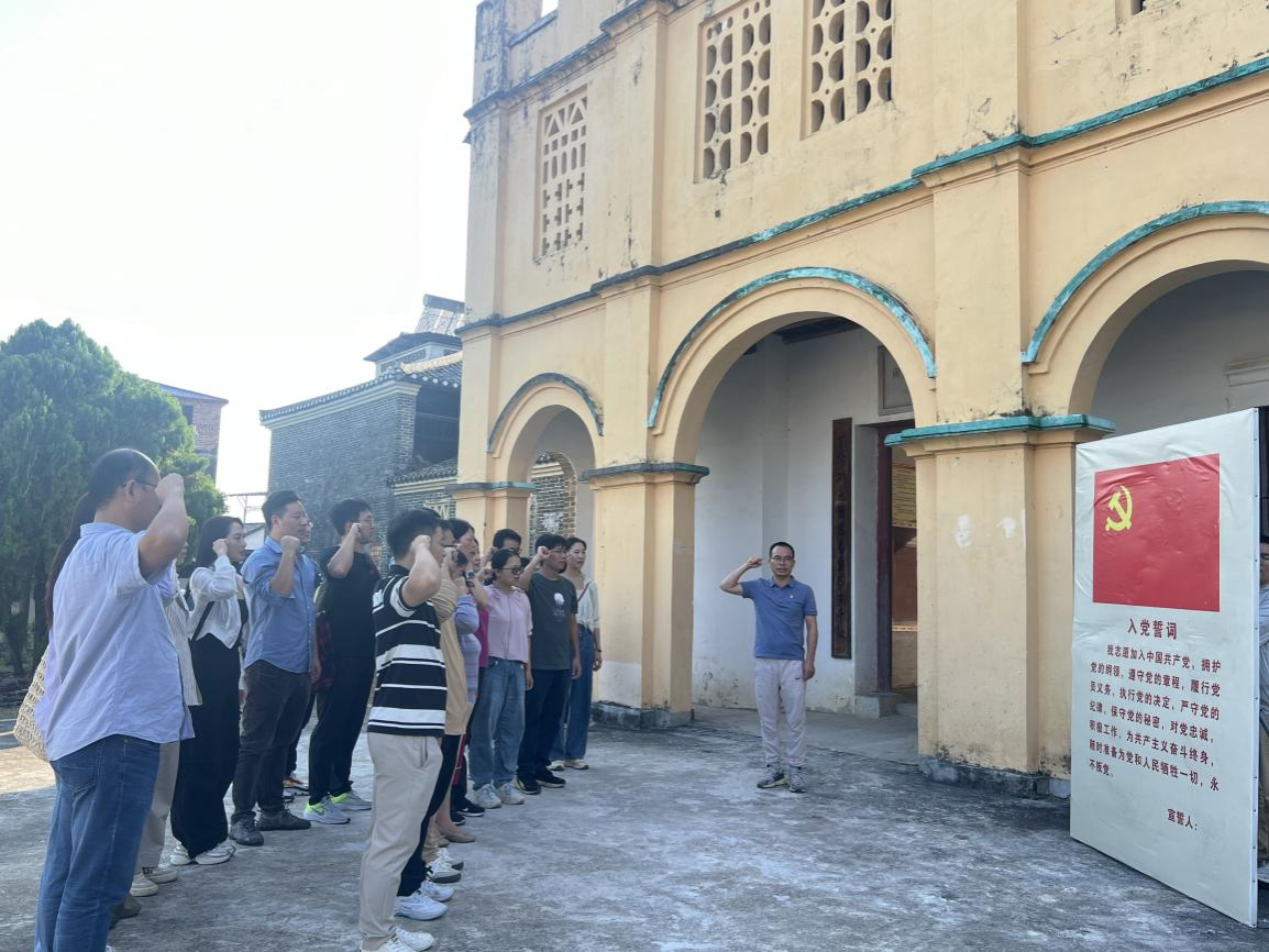 活动首站,全体同志参观大龙湖。大龙湖作为全国唯一一座没有大坝的水库,通过涵洞从地下将水排入灌溉渠,是世界十大喀斯特溶岩水库之一,形成了独特的自然景观。此外,大家还共同参观大明山茶园红色景点,在“清风廊”和“思廉廊”中感受廉政教育,通过茶体验学习茶廉文化。最后,全体同志抵达爱国主义教育基地上林县卢柱村,参观了南陔革命旧址与上林县历史发展纪念馆。南陔革命旧址作为上林县最早反封建反帝国主义的民主革命活动中心,承载着丰富的革命历史和精神遗产。在这里,韦东林副书记带领全体党员回顾了入党誓词,重温入党的初心和使命。