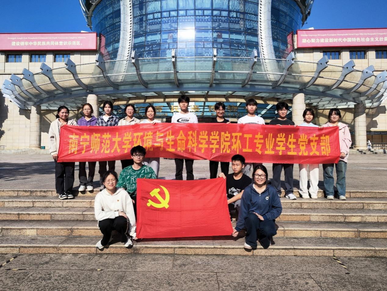 为引导党员同志树立正确的中华民族历史观,深入了解各民族的历史根脉和文化传承,提升党员的社会责任感和保护环境的意识,william威廉亚洲环工专业员工党支部于11月10日在广西民族博物馆和邕江沿岸公园开展了“担当时代使命,共筑强国理想”主题党日活动。环工专业员工党支部部分党员和入党积极分子参与了此次活动。