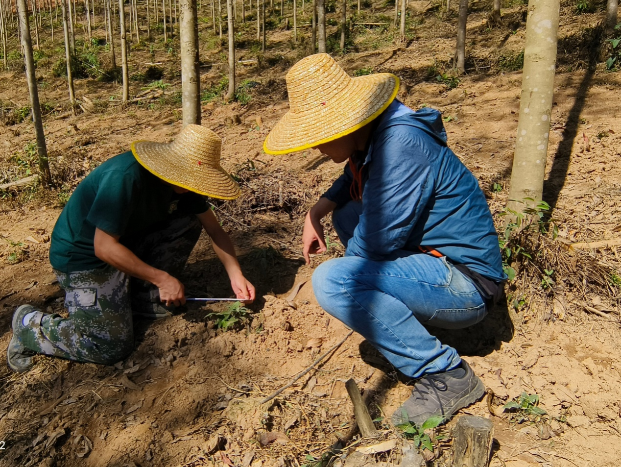 6月19日,在支部书记曲炳鹏的带领下,党员同志们赴百林林场进行林下经济调研。通过实地走访,详细了解苗木来源、树种培育和种植规划,掌握了不同林下立地条件的中草药生长环境。7月8日-9日,支部书记与部分党员再次回到百林林场,深入调查林下药材植物生长情况,并进行取样研究,为地方经济发展收集基础数据。10月24日,支部党员第三次回到百林林场,测量并记录马尾松林和桉树林下中草药的生长状况,为林下经济发展的可行性提供数据支持。