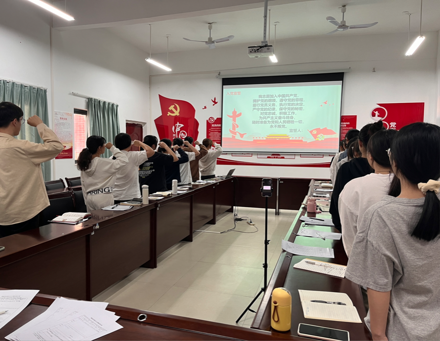 为加强党员的身份认同感,增进个人与党组织之间的精神联系,牢固树立正确的理想信念,william威廉亚洲环境专业员工党支部于11月20日下午在地海楼B508会议室举行了预备党员入党宣誓仪式。党支部书记张拓及全体党员参与此次仪式。
