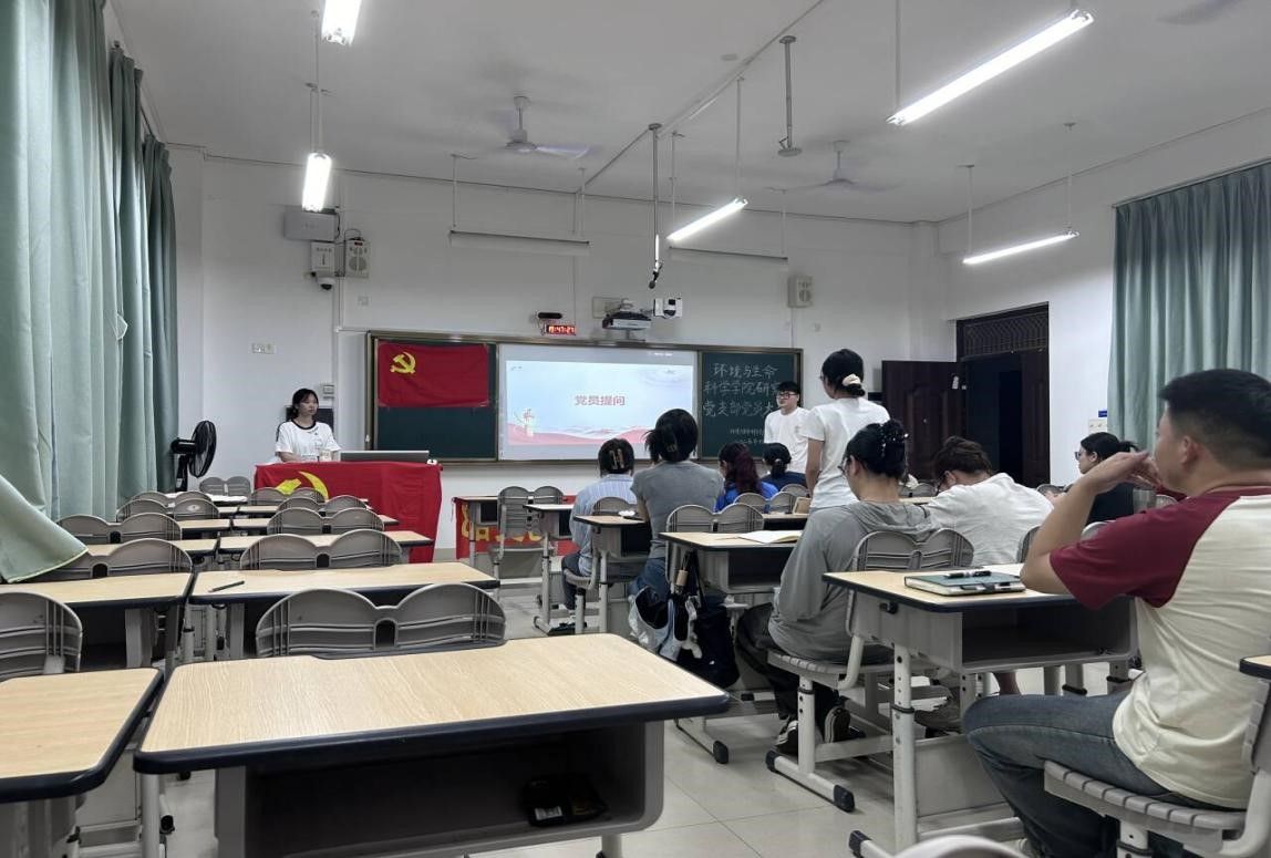 本次会议由支部书记潘艳桃主持。会上,8名入党积极分子依次进行自我介绍,从自我基本情况、对党的认识、入党动机、思想、工作和学习等方面展开全面详细的汇报,分析总结自身的优点和不足。支部党员根据群众意见调查结果对其进行整体评价并提出改进建议,同时提出党史问题,由8名积极分子进行回答。