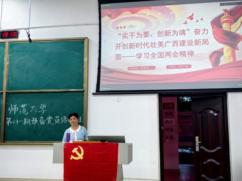 随后,张新英副经理以“‘实干为要、创新为魂’奋力开创新时代壮美广西建设新局面——学习全国两会精神”为主题,为学员们带来了一场内涵丰富的党课培训。她紧密围绕全国两会以及“广西新春第一会”核心内容,深入浅出地阐述了文化融合与民族地区产业发展、乡村振兴与生态振兴、民族地区发展与国家战略等重要议题。她强调,作为新时代的党员青年,要善于抓住发展机遇,在面对挑战时勇往直前,以实干为导向,明确自身责任,将个人理想与国家战略紧密结合,积极贡献青春力量。