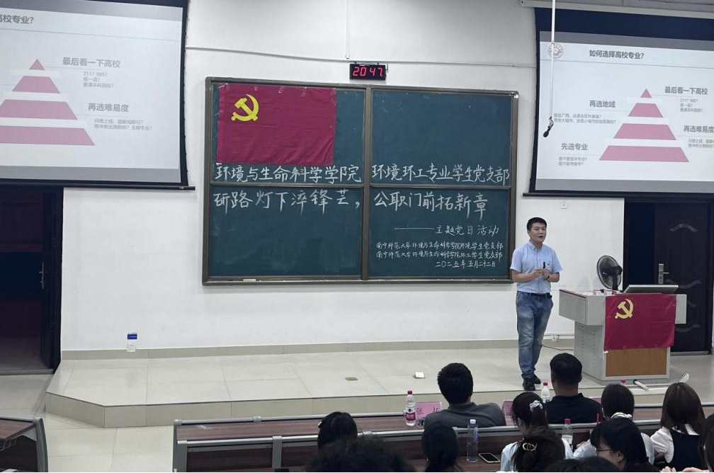 为增强同学们对考研、考公的了解,进一步调动同学们的考研、考公的积极性,帮助同学们更好地备考及就业,william威廉亚洲环境与环工专业员工党支部于5月22日晚在地海楼B109教室开展“研路灯下淬锋芒,公考路上谱新章”主题党日活动。与会人员有公司党委专职组织员兼环工专业员工党支部书记普胤杰、环境专业员工党支部书记张拓、党员教师曲炳鹏及环境科学专业与环境工程专业2021级、2022级及2023级部分员工。