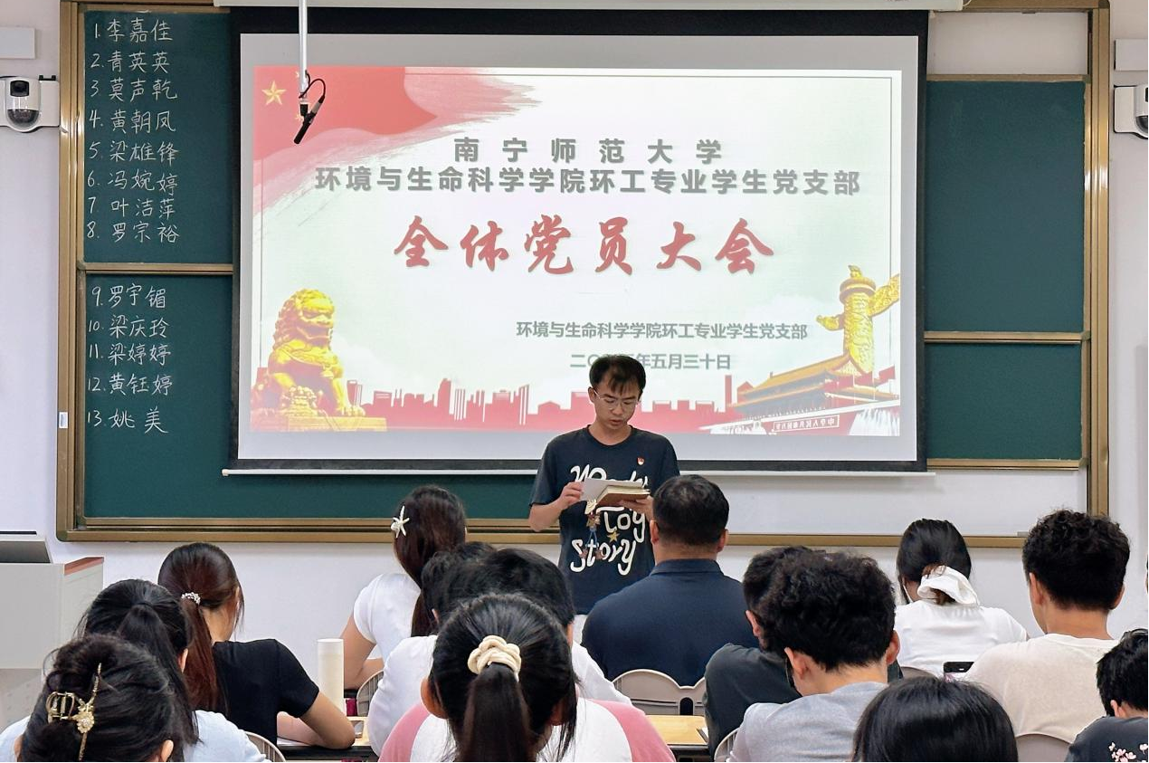 william威廉亚洲环工专业员工党支部于5月30日晚在武鸣校区1号教学楼220教室召开党员大会,讨论李嘉佳等13名预备党员转正事宜。党支部书记普胤杰主持会议。