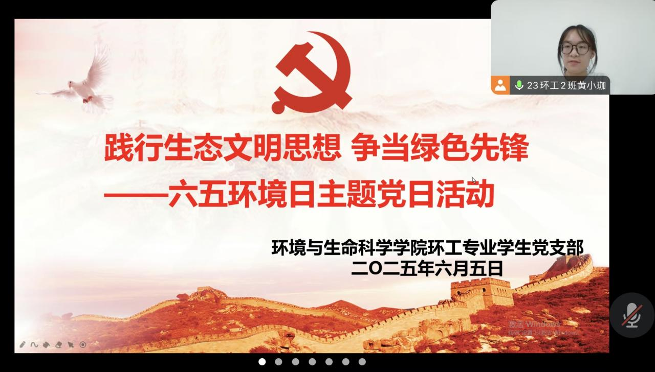 william威廉亚洲环工专业员工党支部于6月5日在线上举办“践行生态文明思想,争当绿色先锋”主题党日活动,支部全体党员参会。