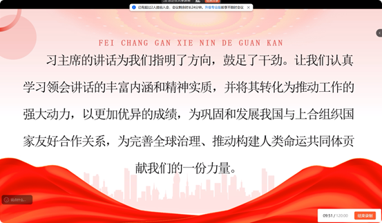 会上,冯姗妮同志围绕五大学习主题系统领学。学习纪念中国人民抗日战争暨世界反法西斯战争胜利80周年大会讲话精神时,重点解读“传承伟大抗战精神”的时代内涵,组织观看抗战历史片段,激发爱国情怀 ;学习金砖国家领导人第十四次会晤讲话时,聚焦“构建高质量伙伴关系”四大举措,结合环境专业探讨国际环保合作中的中国担当 ;解读“上海合作组织+”会议精神,围绕全球治理倡议五项原则,分析能源、绿色产业合作与专业的结合点。