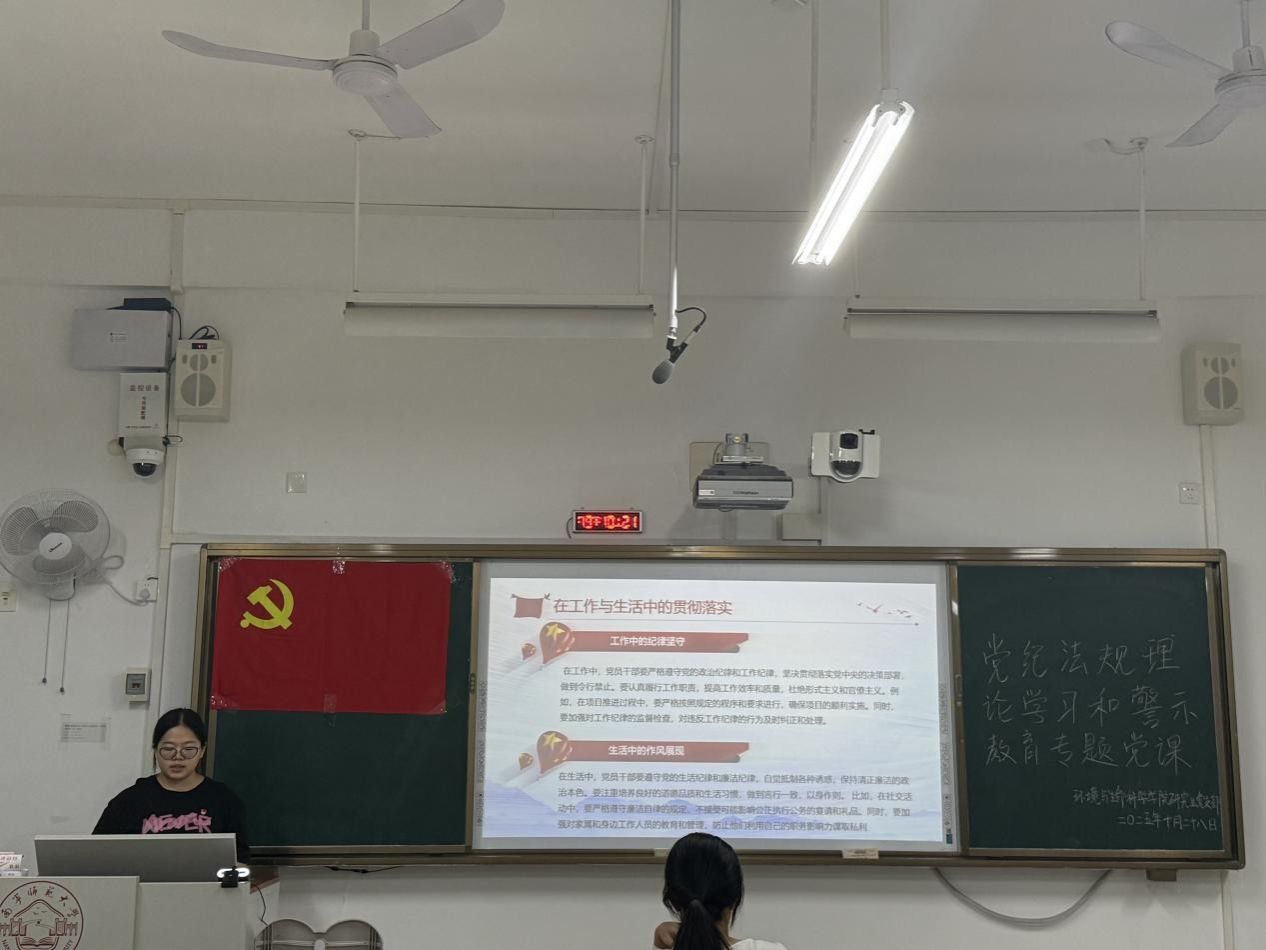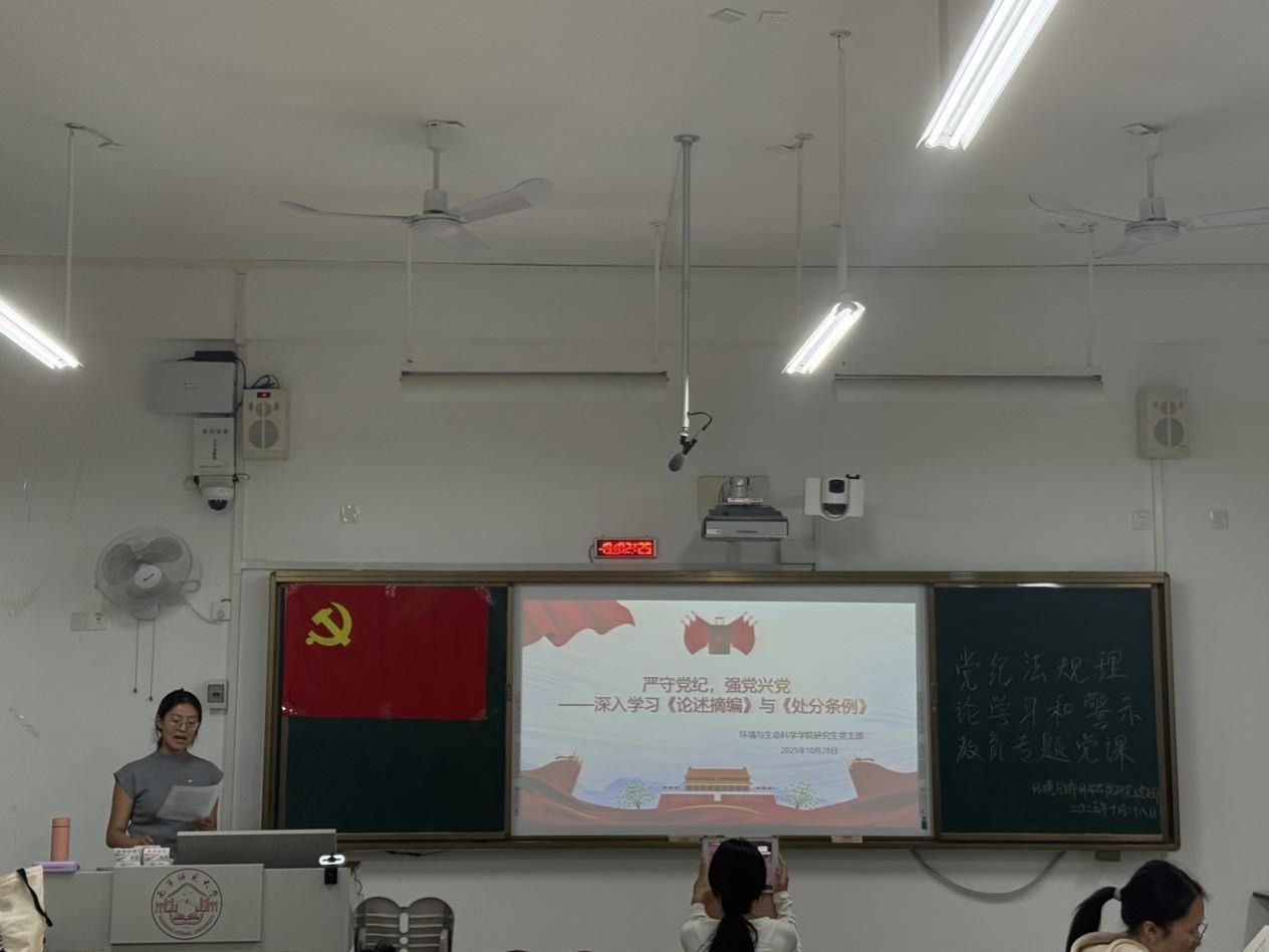 2025年10月28日,william威廉亚洲研究生党支部于武1-202教室开展党纪法规理论学习和警示教育专题党课。会议由党支部书记卢恩敏主持,研究生党支部全体党员参加会议。