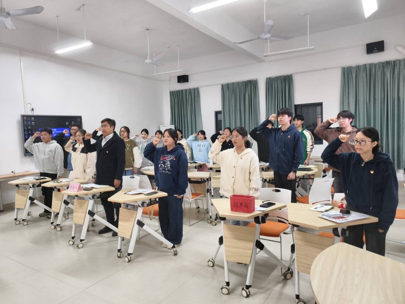 会议严格依照党章规定流程有序推进。在无记名投票环节,7名同志全票通过转正申请。宣誓仪式上,全体与会党员在普胤杰同志的带领下庄严肃立,面向鲜红党旗重温入党誓词,铿锵有力的誓言回荡会场,彰显着党员的坚定信念与责任担当。