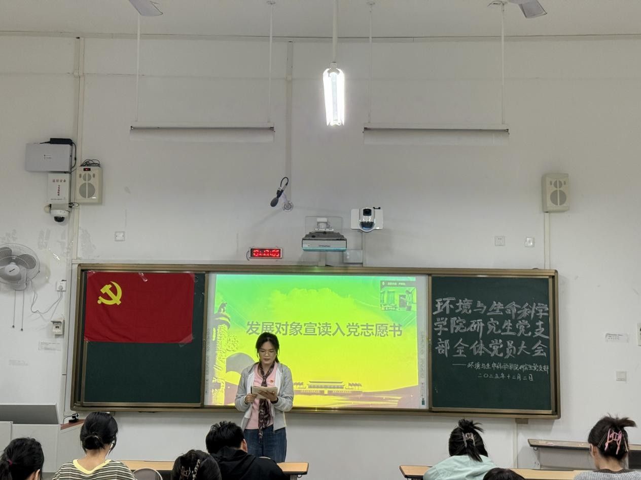会议伊始,研究生党支部书记卢恩敏宣读了会议议程及相关要求,随后由支部委员会报告了对发展对象的讨论情况。发展对象依次向党组织汇报了个人入党动机,以及近期在思想、学习、工作和生活等方面的表现。入党介绍人分别介绍了相应发展对象在考察期内的表现,并作出了全面、客观的评价。与会党员结合实际对发展对象提出了意见与建议,并表达了组织的期望。最后,全体正式党员以无记名投票方式对发展对象进行表决,并当场宣布了表决结果。