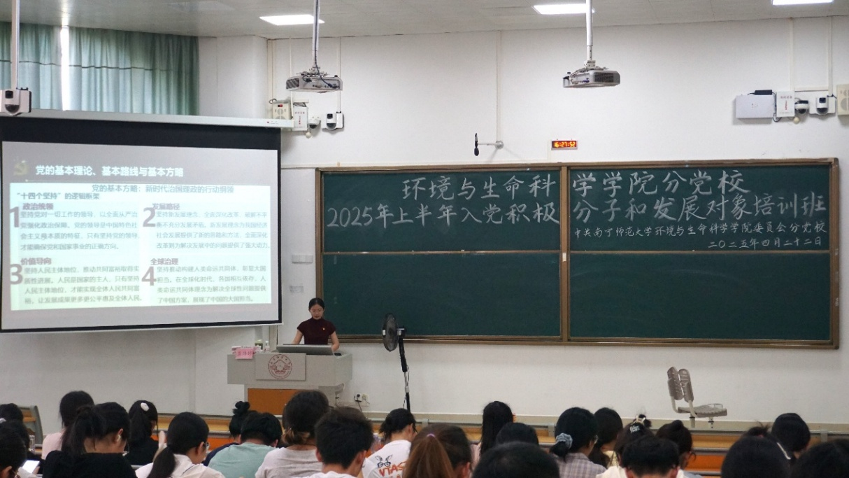 培训中,龚炜婷老师聚焦党的理论与实践核心,深入阐释党的指导思想和使命任务。从毛泽东思想到习近平新时代中国特色社会主义思想,她细致剖析了马克思主义中国化理论体系在实践中的发展脉络,展示了马克思主义中国化与时俱进的真理力量,让学员们对党的理论有了更为透彻的理解。此外,她还深入解读了党的基本路线的历史必然性与现实意义,列举不同类型的入党动机及表现,组织学员思考与讨论,帮助其树立正确的入党动机,鼓励学员们在未来的学习、生活和工作中积极践行党的路线方针政策,为实现中华民族伟大复兴贡献青春力量。