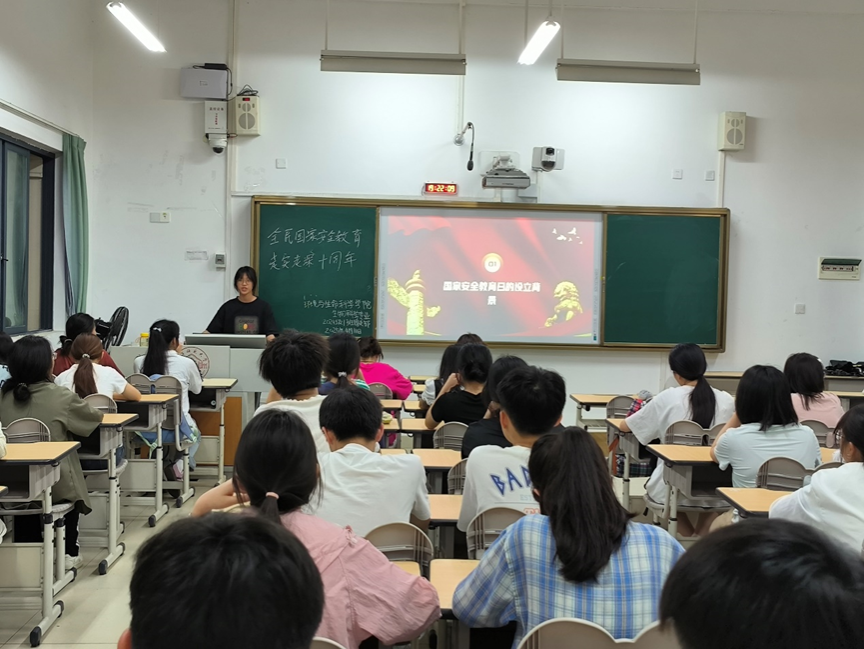 各班团支部积极响应,开展了形式多样、内容丰富的团日活动。部分班级团支书化身“安全讲解员”,通过通俗易懂的语言和鲜活的案例视频,深入浅出地讲解了从政治安全到生态安全、从网络安全到生物安全等多领域的国家安全知识。一个个与生活息息相关的安全问题案例引发了同学们的热烈讨论和深刻思考。2024级生物4班的李同学说:“以前总觉得国家安全离我们很遥远,但通过这次团日活动,我深刻认识到国家安全就在我们身边,每个人都应为维护国家安全贡献力量。”有的班级同学走上讲台,结合自身学习和生活实际,向同学们普及十年来国家安全教育取得的成果或典型案例。其中,2022级生物2班以“网络安全陷阱大揭秘”为主题,分享了校园中常见的网络诈骗案例,引发同学们强烈共鸣。