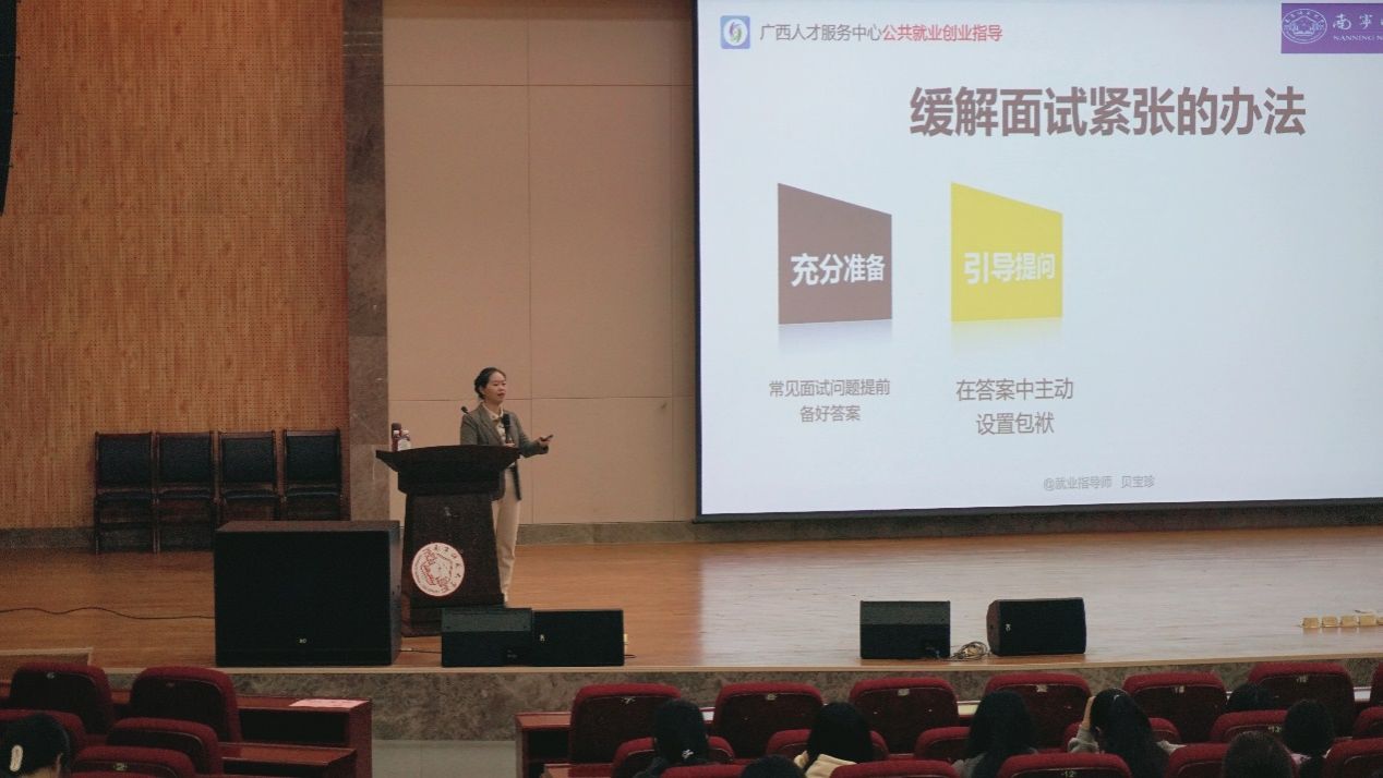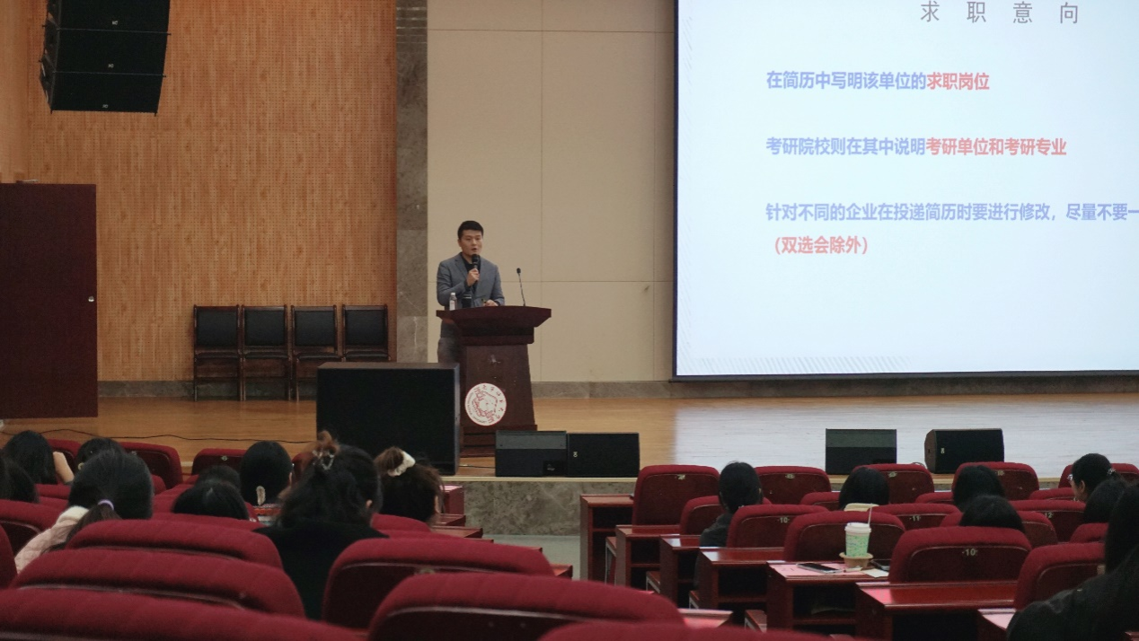 随后,公司开展求职专项辅导活动。环境科学专业曲炳鹏老师围绕简历撰写这一关键环节,从内容定制、排版优化、成果量化等多维度展开细致讲解,为毕业生传授简历制作的核心要点。特邀嘉宾贝宝珍则聚焦面试场景,围绕面试逻辑表达、礼仪形象管理等核心环节举例进行实际的技巧分享,助力毕业生提升求职成功率。