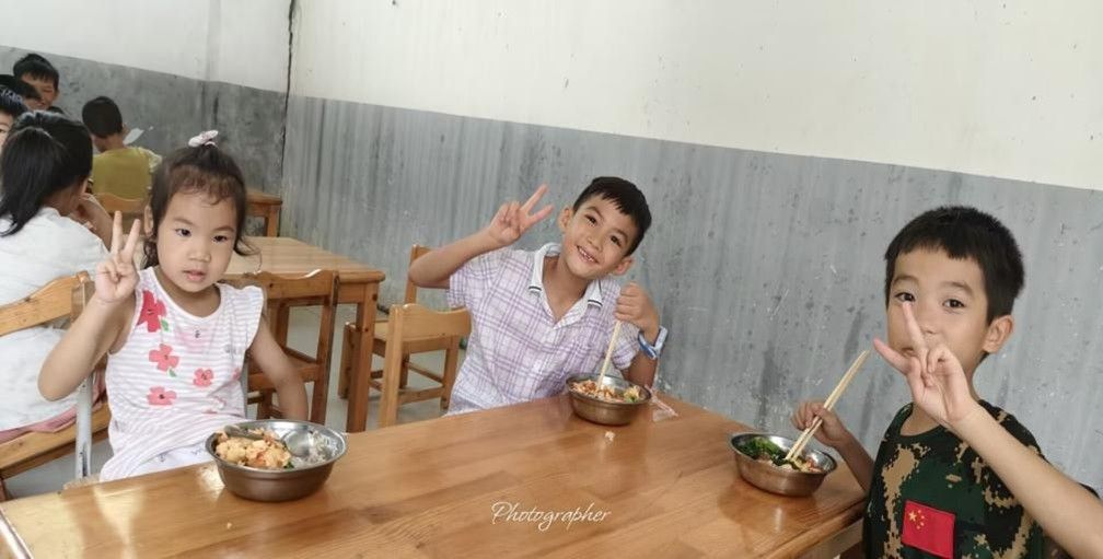 分餐时,刚出锅的饭菜散发着热气,使厨房的温度又升高了几分。他们细心地把饭菜分匀,保证每个孩子拿到的都是热乎的。待大家用餐结束,收拾碗筷、清洗锅碗时,他们的衣服早已被汗水浸透。