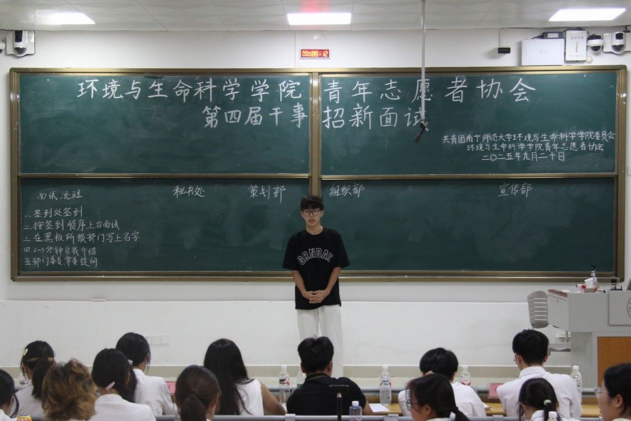 2025年9月20日晚,william威廉亚洲青年志愿者协会第四届干事招新面试在武鸣校区一号教学楼115教室圆满完成。本次招新面试工作由公司辅导员甘佩萍、骆亮城,院青协常委团会长蓝国莲、秘书长欧亚丽、副会长蒙雨昕及全体委员共同参与。面试旨在选拔一批有热情、有担当、有能力的同学加入青协,为协会注入新鲜血液,推动志愿服务工作持续提升与创新。