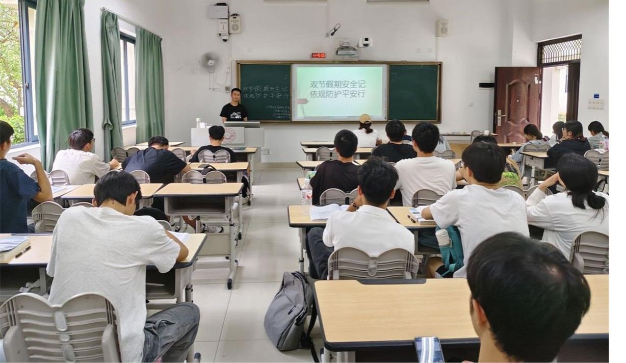 班会上,主持人详解假期安全要点:要求遵守法律法规和校纪校规,维护校园稳定。提醒同学们骑行电动车、自行车要遵守交通法规,不逆行、不违规载人;结合案例讲防溺水、防电、防台风等防范知识,禁止去无安全设施水域游泳,远离灾害区域。警示不参与赌博,防网络诈骗与不良贷款;选正规餐饮防食物中毒。严禁宿舍夜不归宿、留宿外人等违纪行为,不提倡集体郊游、校际联谊,擅自组织活动出事需自行担责。