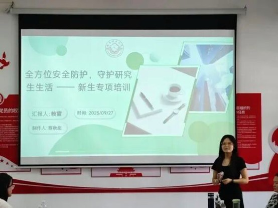 本次入学教育同步推进安全与心理健康教育,文体部成员与班级心理委员聚焦 “全方位安全防护” 主题,围绕反诈、人身财产、实验室、网络、消防、交通、国家安全七大领域,开展了细致的知识讲解。现场不仅传授了 “刷单返利” 等常见诈骗手段的识别方法、实验室突发情况的应急处理流程等实用技巧,还详细告知了校医院就医流程、应急报警方式等关键信息。同时,文体部成员还介绍了公司心理咨询中心的服务内容与预约方式,引导新生主动关注自身心理状态,学会用科学方式调节情绪,为平稳度过研究生生涯筑牢心理防线。
