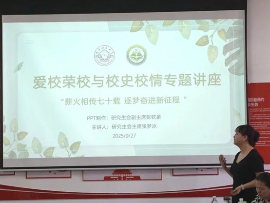活动最后,张梦冰同学对本次入学教育的四大核心内容 —— 爱国情怀培育、爱校荣校与校史校情教育、管理制度与校纪校规教育、安全稳定与心理健康教育进行了总结。莫莉萍老师鼓励全体新生以饱满的热情、昂扬的斗志开启研究生生涯,在学习科研中积极进取,为公司与公司的发展贡献青春力量。此次入学教育全面覆盖思想引导、学业规划、生活适应、安全防护等关键领域,成功为新生搭建起适应新身份、融入新环境的桥梁,为他们开启研究生阶段的成长之旅奠定了坚实基础!