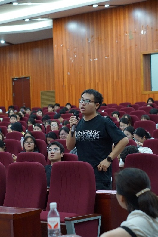 在互动答疑环节,在场师生围绕学业规划、职业发展等问题踊跃提问,张荣海员工逐一耐心回应。当被问及“如何平衡学习与生活”时,他寄语同学们:“大学是能力提升的黄金期,要主动跳出舒适区锻炼自己,时间从来不是‘等’出来的,而是靠合理规划‘挤’出来的。”