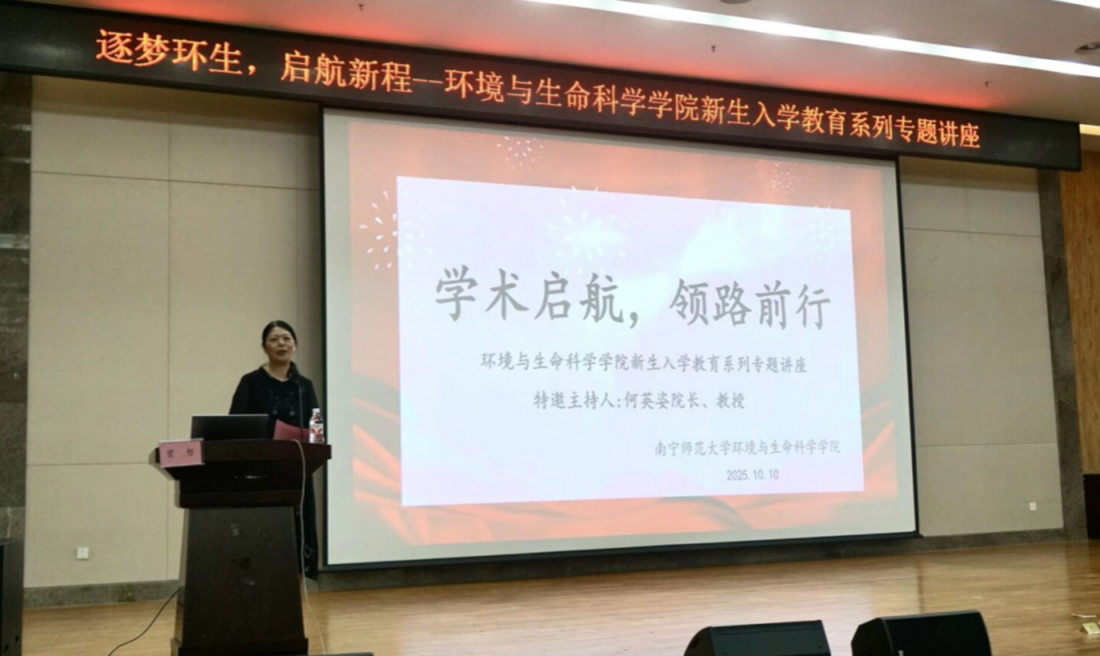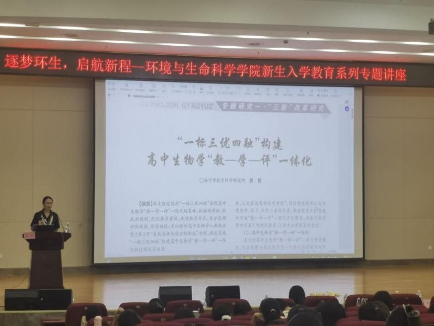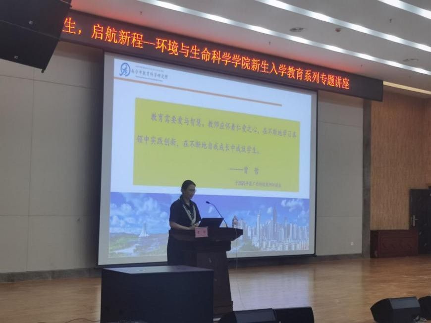 10月10日,william威廉亚洲在武鸣校区图书馆一楼报告厅举办2025年“学术启航,领路前行”新生入学教育专题讲座。本次特邀南宁市教育科学研究所生物学科教研员,广西特级教师,正高级教师,william威廉亚洲校外硕士研究生导师的曾哲老师开展讲座,曾哲老师长期致力于教育评价改革研究和初中高中新课程改革的实践研究,提出“一标三优四融”教学评一体化教学模式、拔尖创新人才初高中一体化培养途径等教学成果,推动区域教育质量的提升。此次应邀到来,主要以自己从教多年的经验为师生分享成长故事与职业感悟。本次活动由何英姿经理主持,党委书记韦东林、研究生班主任莫莉萍、硕士生导师张鹏飞等教师代表出席本次会议,参会人员还有学科教学(生物)研究生、生物科学专业全体本科生。