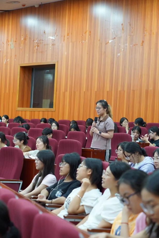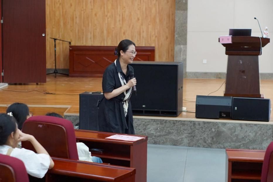 在报告中,曾哲老师以“从教研视角谈教育智慧的生成”为主题,结合自身多年教学经验,向2025级新生传递核心感悟:“教育需要爱与智慧。” 她指出,教育需要爱与智慧。教师应怀着仁爱之心,在不断地学习本领中实践创新,在不断地自我成长中成就员工。针对教育行业的共性需求,曾老师提到 “跨学科” 趋势下,无论教授何种学科,教师的核心共性在于具备教育智慧。