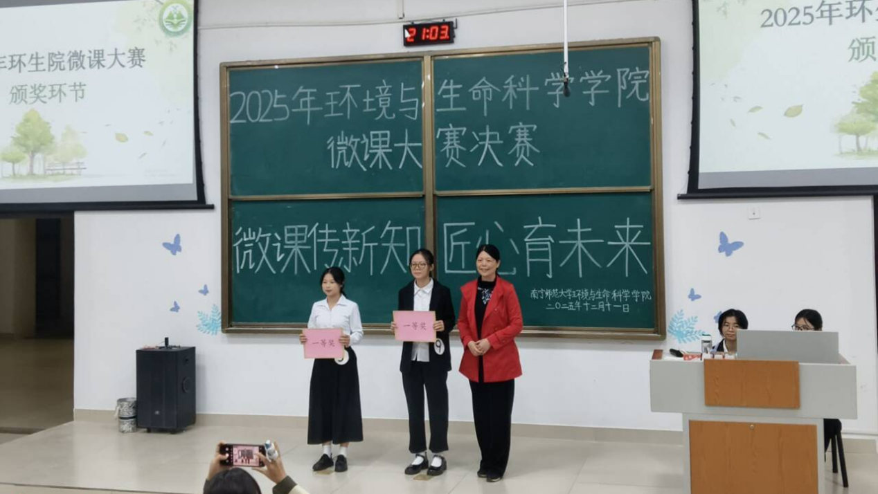何英姿经理强调微课大赛是同学们的训练场和展示台,微课虽“微”却凝聚匠心,能有效推动课堂革命与赋能个性化学习。随后,十二支队伍依次展示作品。教材组的《微观探险记:解锁细菌的奇妙奥秘》从幽门螺杆菌切入,带领观众深入微观世界,认识细菌在自然与人体中的双重角色;科普组的《深海铁甲“伪龙虾”——波士顿龙虾的身世之谜和不老传说》借“波士顿龙虾几乎不老”的生物学趣闻,展开关于衰老、再生与物种适应性的深蓝探索。
