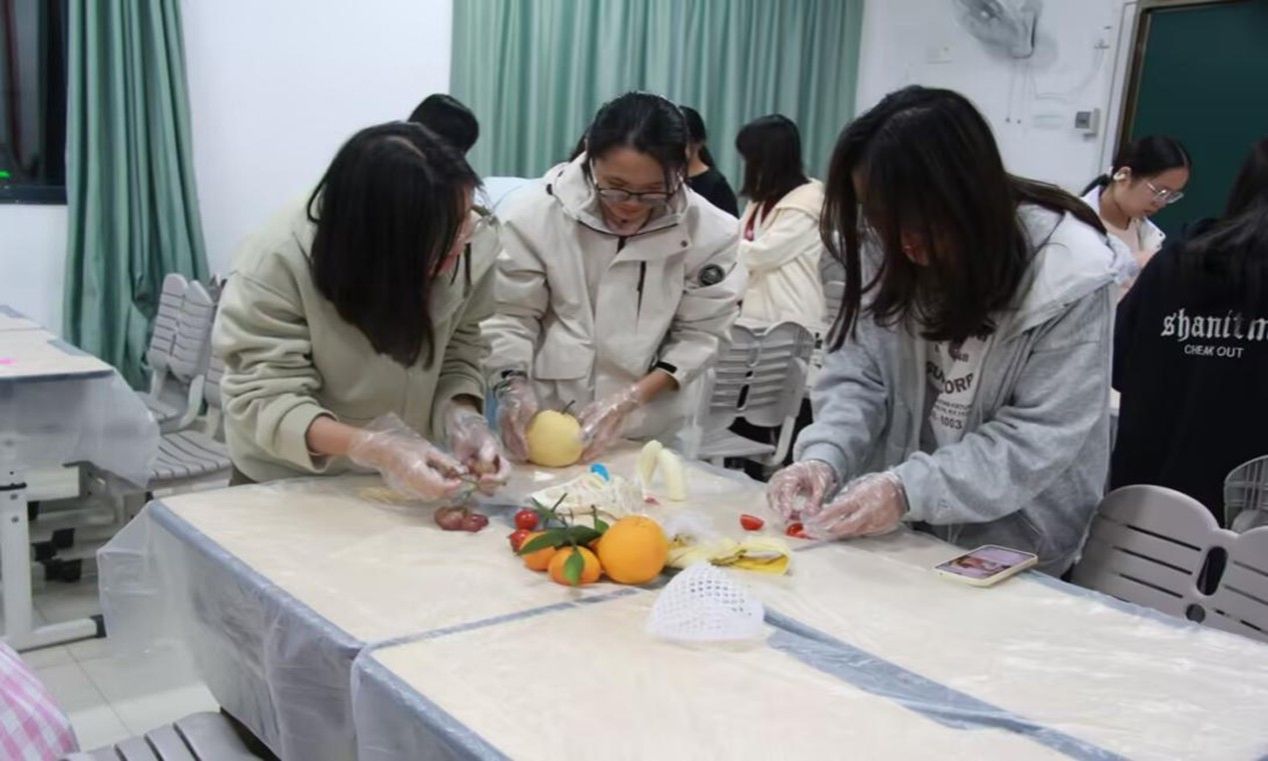 当晚,公司在武鸣校区1号教学楼115教室举办健康科普讲座,围绕蛋白质、铁、维生素D等营养物质补充及饮食、运动、保暖结合的过冬方案展开,现场氛围热烈,同学们收获颇丰。讲座结束后,“创意暖冬”水果拼盘活动随即开展。近二十组同学分工协作创作,以实践践行所学,实现学用结合。