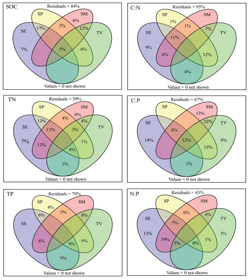 方差分解分析揭示土壤酶、微生物、地形因素对土壤碳、氮、磷化学计量特征的影响