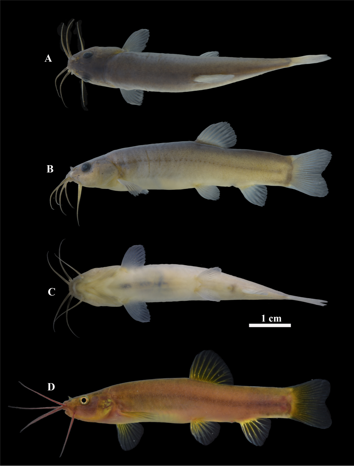 论文通过形态和分子生物学实验手段证实并命名了两个异条鳅鱼类新种。异条鳅属隶属于鲤形目,条鳅科,颊鳞异条鳅Paranemachilus genilepisZhu, 1983为模式种。长期以来,异条鳅属都是以颊部有鳞为该属的重要特征。2013年,异条鳅属鱼类第2个物种平果异条鳅P.pingguoensisGan, 2013被命名,但该种颊部无鳞。至此,异条鳅属没有更多的物种被发现和命名。随着分子生物学技术越来越广泛地被应用在传统形态分类研究中,一些物种被重新修订后归为异条鳅属鱼类。2021年,靖西云南鳅Yunnanilus jinxiensisZhu, Du, Chen&Yang, 2009归入异条鳅属。2023年,间条鳅属模式种郑氏间条鳅Heminoemacheilus zhengbaoshaniZhu&Cao, 1987归入异条鳅属。2023年,异条鳅属第5个物种崇左异条鳅P.chongzuoDu, Xu, Luo & Zhou,2023被命名。经重新修订,异条鳅属鱼类具以下组合特征:前后鼻孔紧相邻,前鼻孔管状,末端有不发达的须状延伸,其长度短于前鼻孔管深的1/2;侧线不完全,止于胸鳍末端;鳔前室分为左右两侧室,包于骨质囊中;后室前端通过一长的细管和前室相连,游离于腹腔中。