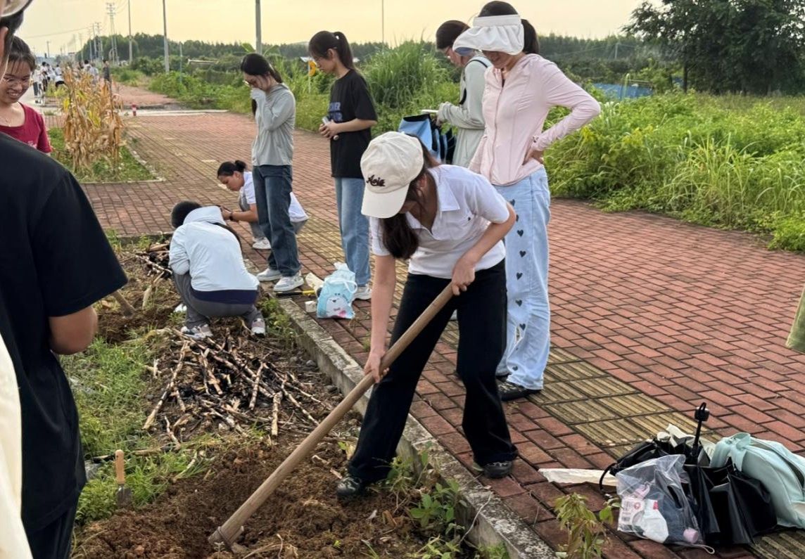 7月12日下午,实习首站聚焦武鸣校区周边土壤调查。师生在公司北门绿化带选取完整土壤剖面露头点,通过剖面观察、分层描述,详细记录土壤颜色、质地、结构等特征,并用取样工具按层次采集土壤样品,以此深入分析区域土壤类型、分布规律及形成与环境的关联,让课堂上的土壤学知识在实地勘察中得到具象化呈现。