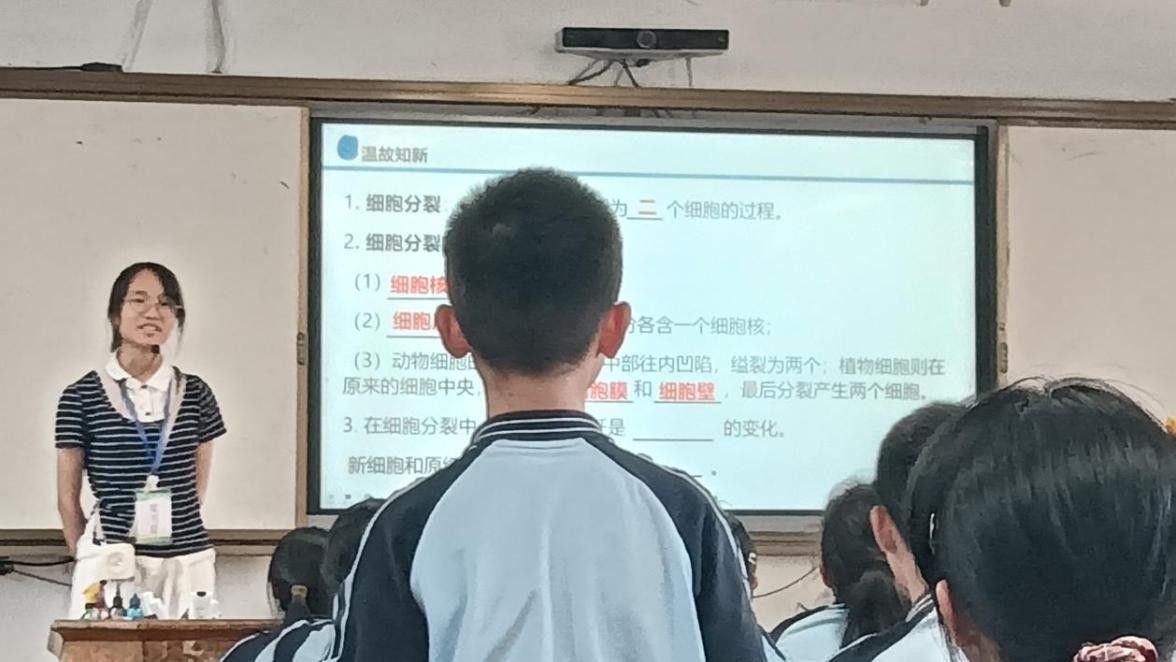 实习期间,实习生王彬莹在七年级(20)班第七节课执教《动物体的结构层次》一课。她以生动的案例和直观的模型演示,引导员工深入理解细胞、组织、器官之间的层次关系,课堂互动积极,教学效果显著。课后,开展对实习生王彬萤的教学评课交流教学研讨会,会议上,与会教师与实习生们从教学设计、课堂互动、知识衔接等角度展开深入探讨,肯定了其教学思路的清晰性与创新性,同时对细节优化提出了建议。