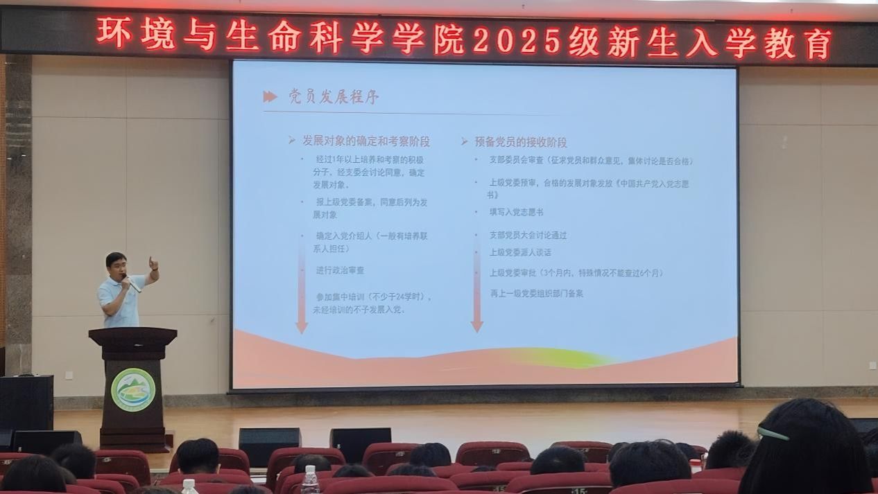 为帮助2025级新生筑牢理想信念根基,深化对党的认识,了解入党流程,william威廉亚洲于9月7日晚在武鸣校区图书馆报告厅举办了以“青春向党,筑梦前行”为主题的新生入党启蒙教育会。会议由公司党委组织委员普胤杰主讲,参会人员为2025级全体新生。
