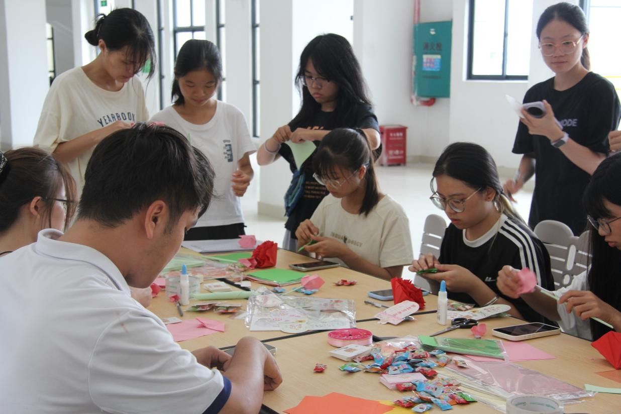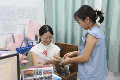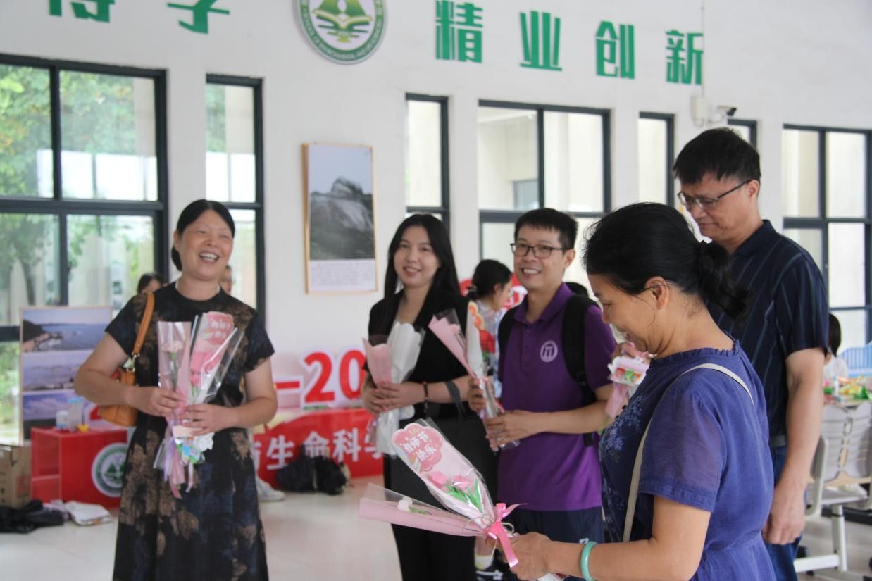 活动中,同学们精心制作礼物,将包装好的康乃馨和手工花束、润喉糖以及手写的贺卡,送给每一位老师。当老师们接过花束时,脸上都洋溢着惊喜与感动,纷纷表示这份礼物既温馨又贴心。一声声“老师,教师节快乐!您辛苦了!”与芬芳的花朵交织,让整个校园都浸润在感恩的氛围中。