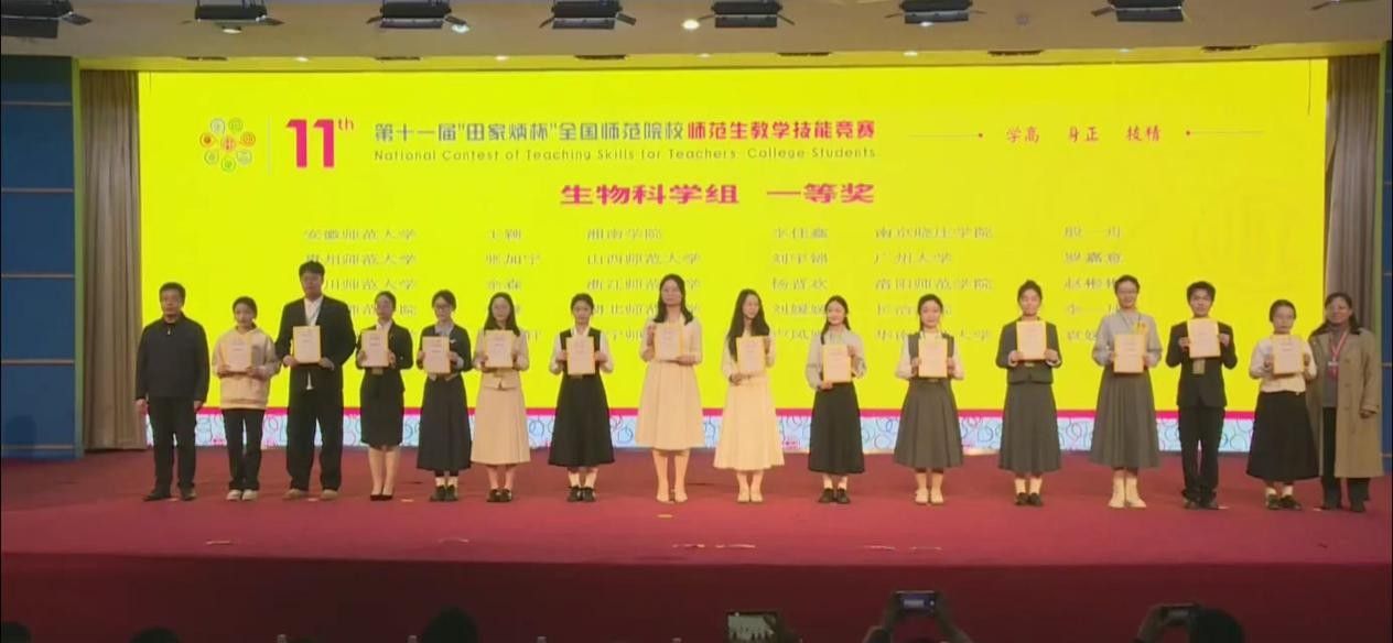 11月29日至30日,第十一届“田家炳杯”全国师范院校师范生教学技能竞赛决赛在浙江师范大学顺利举行。公司生物科学专业卢凤娜同学在指导老师何英姿、庞毅、李鹏的悉心指导下,历经教学设计、即席讲演、模拟授课等多个环节的激烈比拼,凭借扎实的生物学专业功底与生动的教学呈现,荣获全国一等奖。