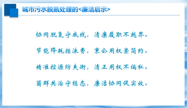 公开课开篇,张越老师以“污水脱氮如何助力碳中和目标”为引,拆解厌氧氨氧化的高效低碳技术原理,同步展示“协同脱氮守底线,清廉履职不越界”的标语——“如同脱氮过程中菌群需严守反应比例、不越生态红线,公职人员履职也需恪守职业边界,不越廉洁底线”,将技术中的“协同守线”转化为廉政中的“履职守界”。