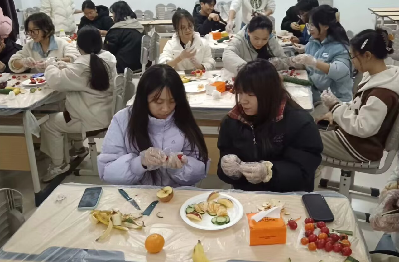 水果拼盘活动:以水果为创作素材,参与者充分发挥想象力与创造力,将各种水果巧妙搭配、精心摆盘,制作出兼具美观与营养的水果拼盘作品。活动期间,大家相互交流水果的营养价值、搭配技巧以及创意灵感,在享受创作乐趣的同时,深入了解水果在日常饮食中的重要性,引导师生们增加水果摄入,丰富饮食多样性,以更有趣味的方式关注营养健康。