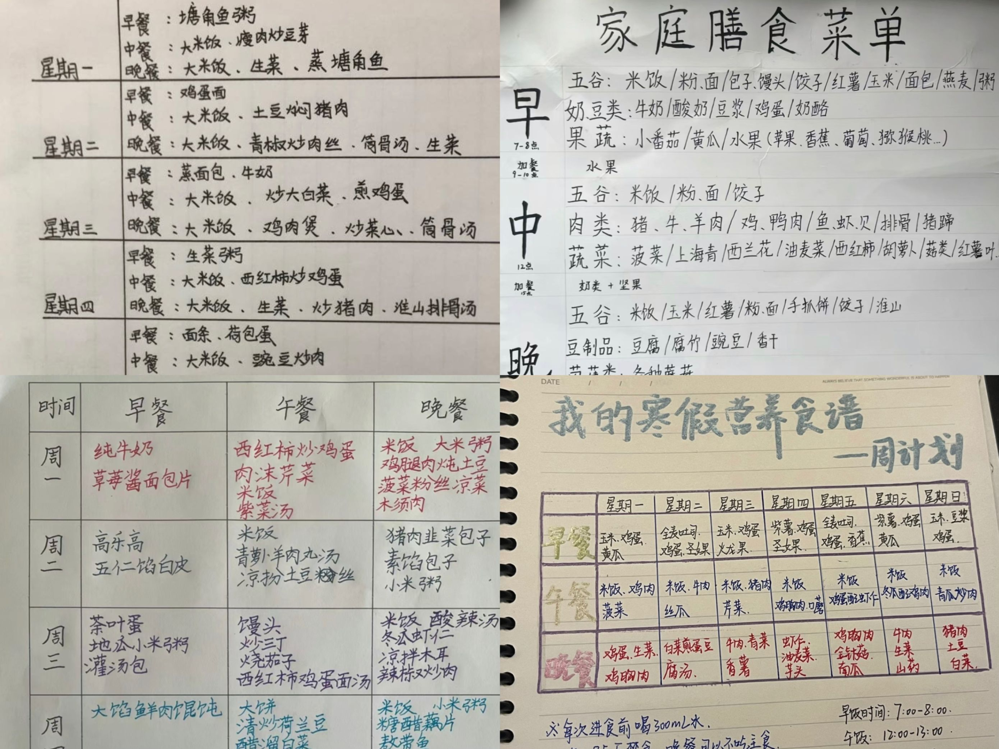设计假期营养食谱:食谱中的菜肴通常具有营养丰富、低热量、高蛋白质等特点,适合在运动前后食用。通过学做运动食谱中的菜肴,同学们将营养与运动相结合,提高了同学们对健康生活方式的认识和实践能力。