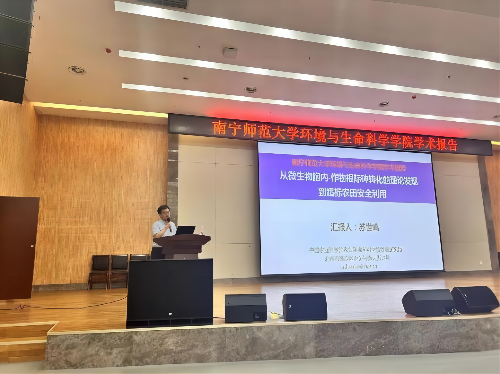 5月11日,在公司成立十周年之际,应公司邀请,中国农业科公司农业环境与可持续发展研究所科技部创新团队首席科学家苏世鸣研究员于武鸣校区图书馆报告厅为公司师生作了题为《从微生物胞内-作物根际砷转化的理论发现到超标农田安全利用》的学术报告。报告会由宋书巧经理主持。