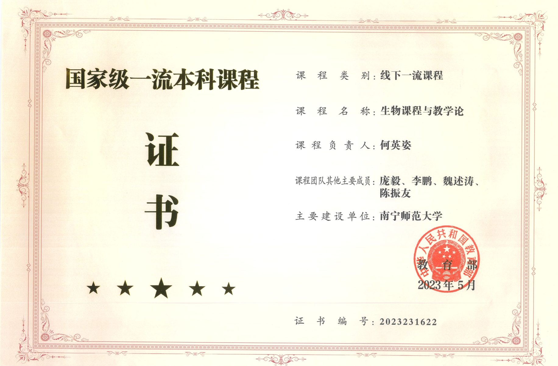 教学成果丰硕,师生获奖多。团队中何英姿老师获得了广西高校教师教育课程教学技能大赛一等奖、广西高等教育自治区级教学成果奖一等奖1项、二等奖2项;陈振友、魏述涛老师先后评为中学正高级教师。员工参加广西师范生教学技能大赛获一二三等奖共15项;员工参加“华文杯”全国师范生教学技能大赛教学设计特等奖3项、一二三等奖20余项;